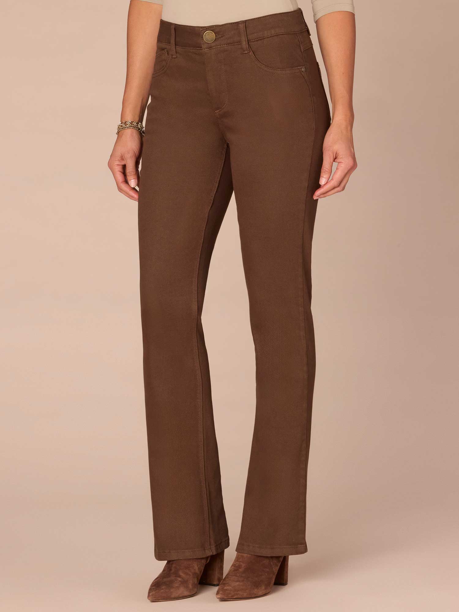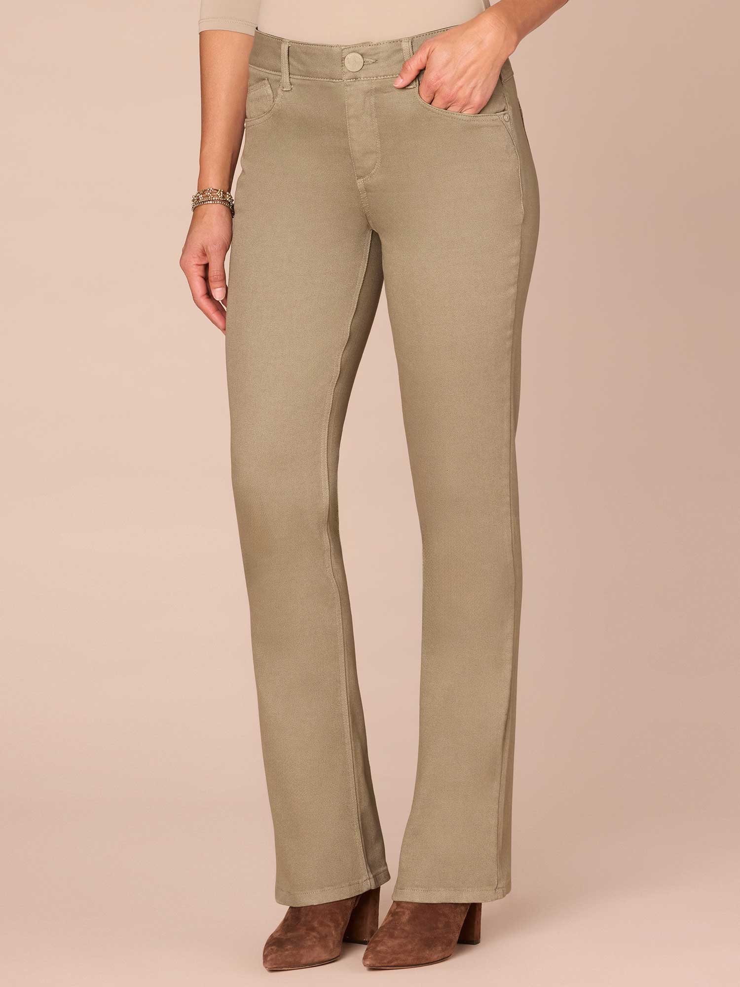 These Itty Bitty Bootcut pants are fitted from the hips to calves, with a baby bootcut leg opening that creates a lengthening effect. Engineered with ‘Ab’solution® fit technology to smooth, support, and enhance your shape—giving you everything from a flatter tummy to a perkier rear view.