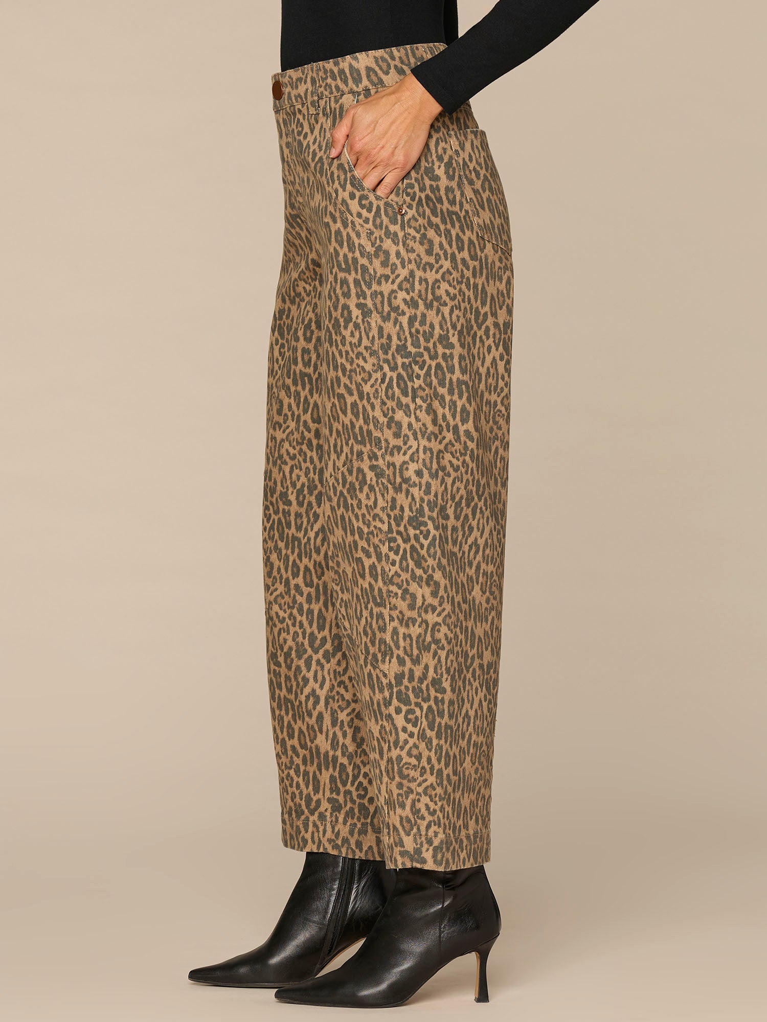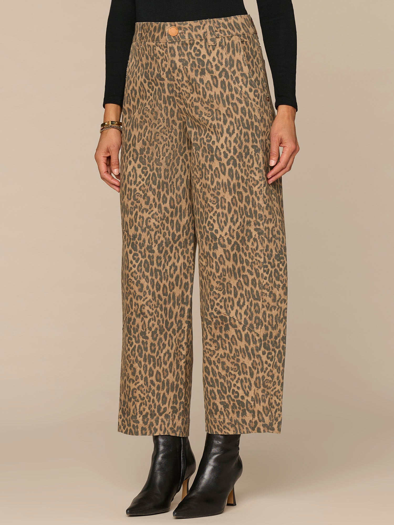 The relaxed Barrel Leg is slightly fitted at the hips, with a looser, relaxed fit from the thighs to the hemline. They feature front dart panels, an adjustable snap hem, animal print, and ‘Ab’solution® fit technology to smooth, support, and enhance your shape—giving you everything from a flatter tummy to a perkier rear view.
