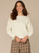 Elevate your cool-weather wear with this feminine pull over sweater. It features long drop shoulder sleeves, a boat neck, embroidered shoulders, and a curled edge hem.