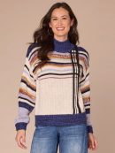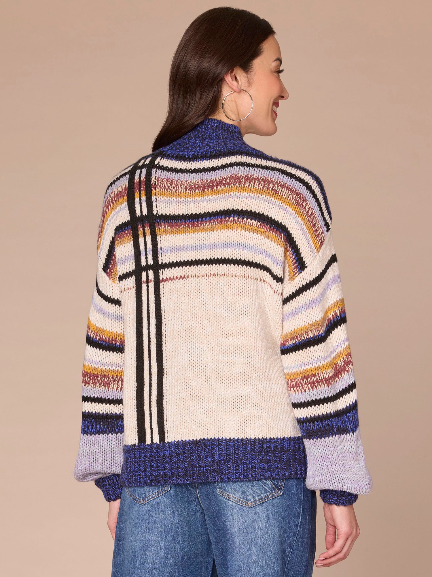 With a mock neck, long cuffed sleeves, and colorful, flattering placement stripes, this sweater is a seasonal staple. It’s perfect for cool evenings out and cozy days in.